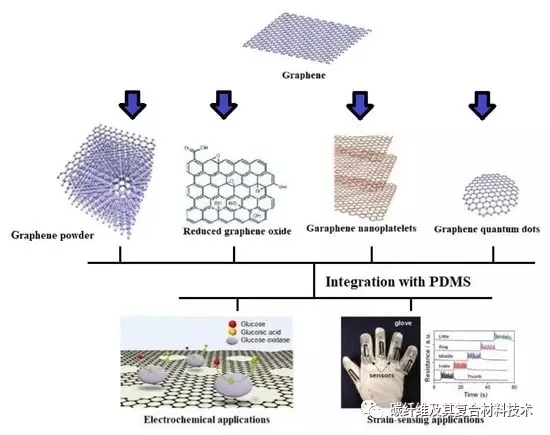 此外,還有一些導(dǎo)電聚合物,例如聚苯胺(PANI)、聚乙炔(PA)、聚吡咯(PPy)和聚(3,4-乙烯二氧噻吩)聚苯乙烯磺酸鹽(PEDOT:PSS),它們需要極少量甚至不需要金屬納米顆粒來(lái)形成導(dǎo)電通路。在上述聚合物中,聚二甲基硅氧烷(PDMS)性質(zhì)相似,兩者都具有化學(xué)惰性、光學(xué)透明、疏水性,且大多具有生物相容性,因此PDMS與石墨烯形成復(fù)合材料的材料。此外,已知PDMS與納米填料形成強(qiáng)界面結(jié)合。這些復(fù)合材料可以為目前可用的健康手環(huán)、葡萄糖傳感器和智能手表增加新的維度,用于監(jiān)測(cè)人體生理狀態(tài)的響應(yīng)性和準(zhǔn)確性。