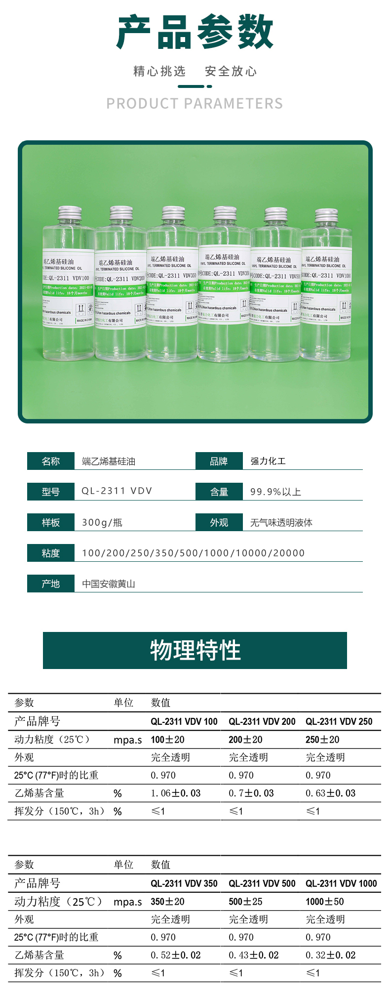 國(guó)產(chǎn)高品質(zhì)端乙烯基硅油QL-2311 VDV100-20000cst